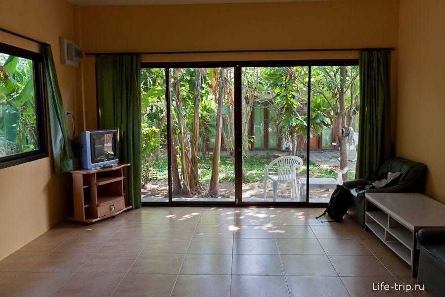Следующий вариант, это как раз те самые апартаменты с бассейном. Апартаменты действительно шикарные, большая гостиная, спальня, отличная кухня, бассейн во дворе. Стоило все удовольствие 15000 бат. Что остановило от аренды, далековато от магазинов, ресторанчиков, пляжей. Расположение у шумной дороги. Отсутствие хоть какой-то лужайки где можно посидеть вечером. Только большая лоджия и это был второй этаж. Хотелось нам все-таки домик, а не апартаменты, так как в квартире мы и дома насиделись достаточно.
