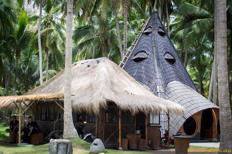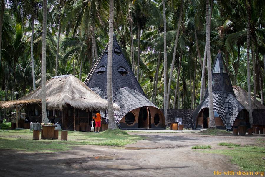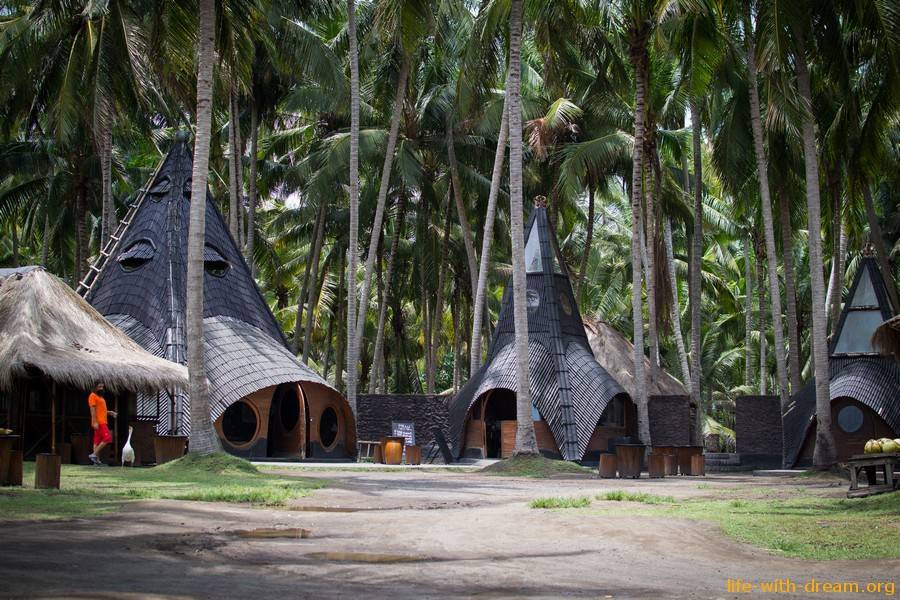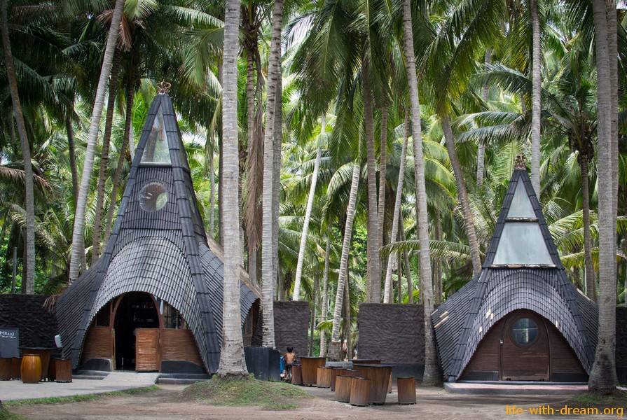 Территория фабрики продумана до мелочей. Сказочные домики, напоминающие жилье хоббитов, со всех сторон окружены высокими кокосовыми пальмами.