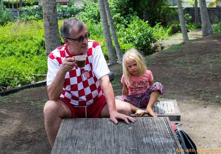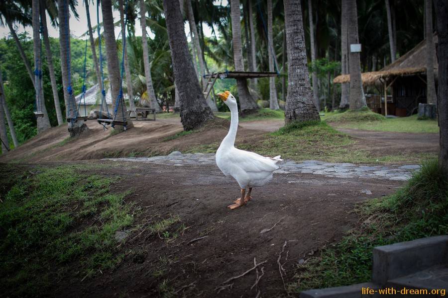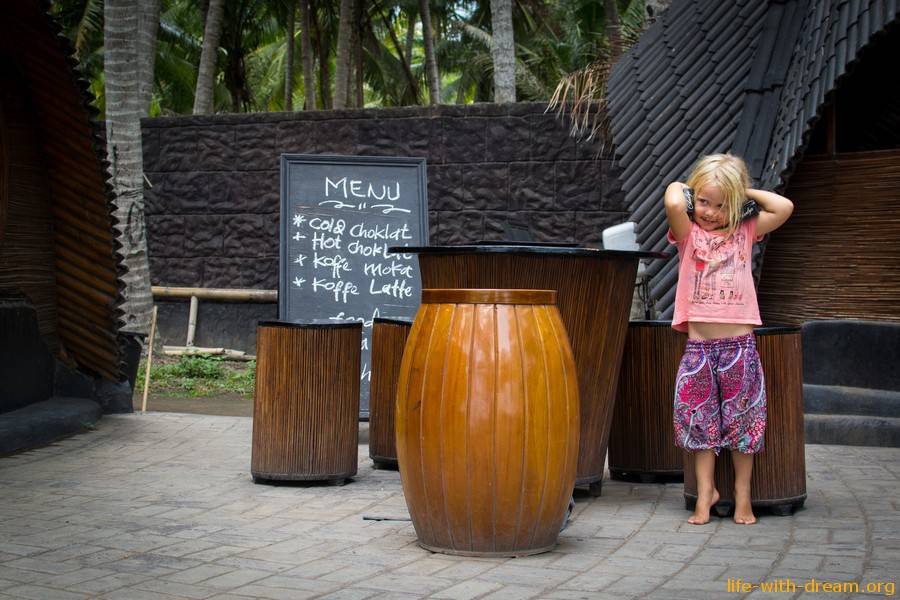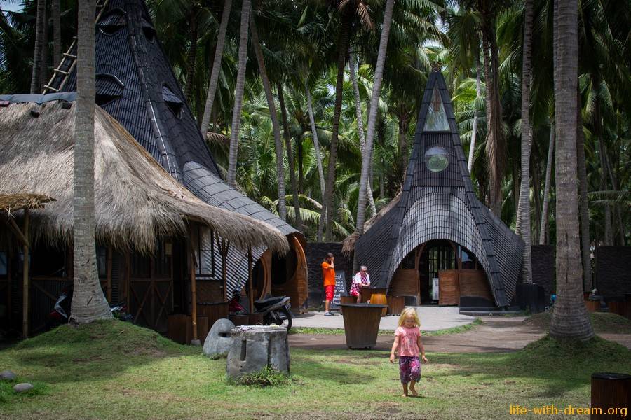 Пространство фабрики очень замечательное, как я упомянула выше: шикарная пальмовая роща на восточном берегу острова, пляж с черным песком и бамбуковые строения хоббитов. Вот чем я люблю Бали, за разнообразия сказочных артефактов вокруг. Даже вроде банальная шоколадная фабрика, как из сказки, ну как не заехать сюда?