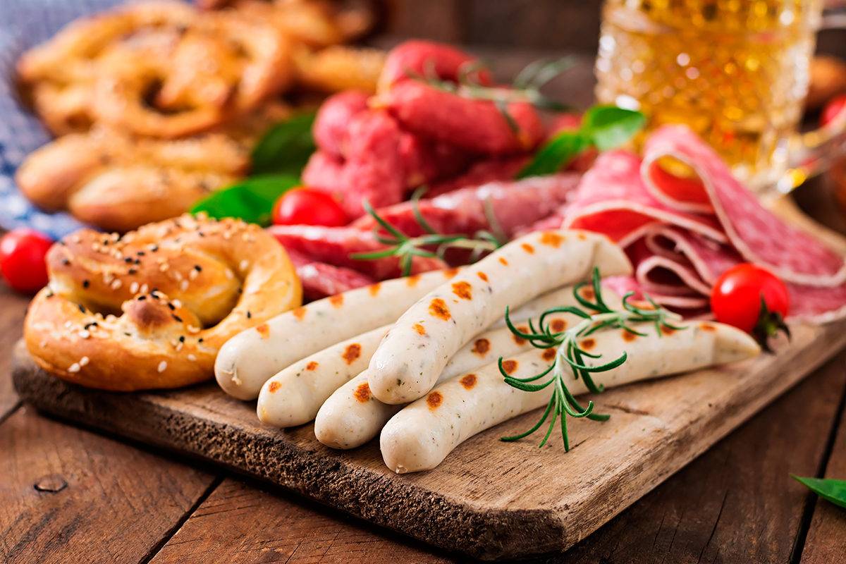 - Белая колбаса. Состоит из телятины, свинины и большого количества приправ. Немцы говорят, что самую вкусную Белую колбасу делают в Мюнхене.