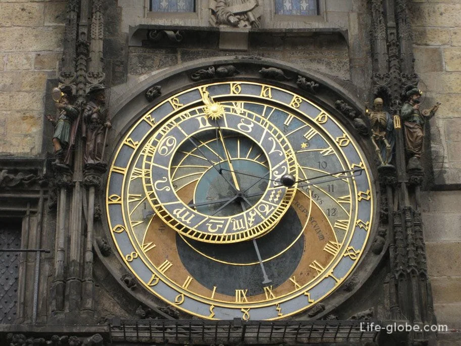 Часы Орлой — это не только необычные фигурки. На часах расположены диски, которые отображают вращающиеся элементы — зодиакальное кольцо, Солнце, Луну. По этим часам можно узнать современное время, старое чешское время, лунную фазу, время заката, рассвета и восхода. И это еще не весь список. Приезжайте в Прагу — посмотрите сами!