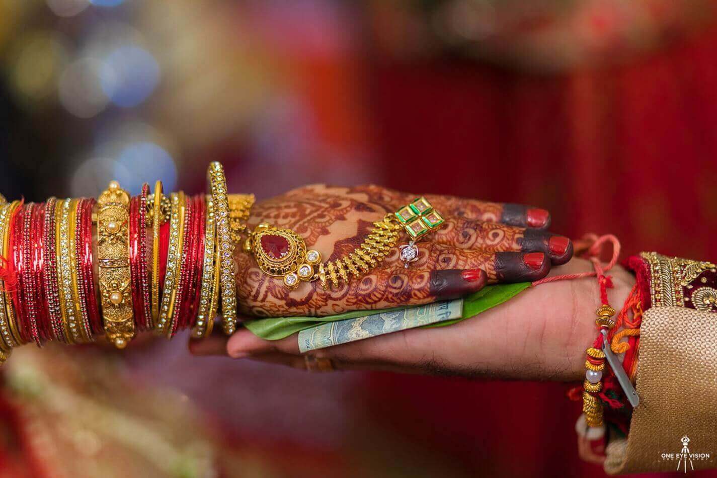 Каждая новобрачная старается надеть какое-либо ювелирное изделие. В Европе нет строгих регламентов на этот счёт. А вот индийская невеста не может обойтись на свадьбе без специальных украшений. Вместе с косметическими процедурами и непосредственно одеянием их обязательно должно быть не менее 16.