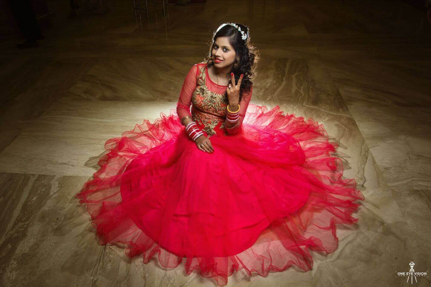 Невест в Индии одевают в красное свадебное сари из шелка или другой легкой материи, богато расшитой золотом, драгоценными камнями и жемчугом. Свадебное сари весит намного больше обычного, к нему есть также фата, которой покрывают голову и лицо невесты до тех пор, пока пужари – индуистский священник, проводящий бракосочетание, не позволит жениху поднять ее. Кроме того, невеста носит всевозможные ювелирные украшения, среди которых обязательно звенящие браслеты, помогающие ей идти в такт вслед за своим супругом. Он, со своей стороны, одет в костюм европейского покроя или в традиционную индийскую курту, с тюрбаном с пером на голове.
