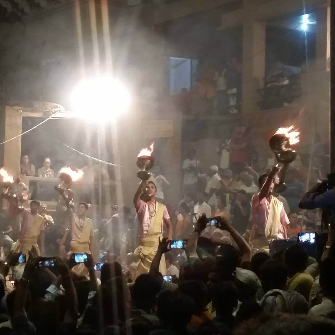 Одно из самых завораживающих зрелищ Варанаси происходит каждый вечер на гхате Дашашвамедх. Группа индусских священников — брахман исполняет аарти — своеобразный ритуал в индуизме с зажженными свечами, в ходе которого преподносят пожертвования: благовония, цветы, фрукты и прочее.