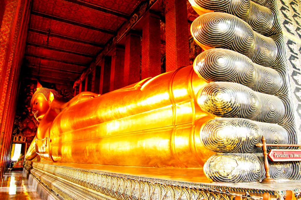 Это самый древний храм Бангкока. Центральной фигурой храма является статуя Будды, находящегося в ожидании нирваны. Высота статуи превосходит пятнадцать метров, а ее ширина сорок шесть метров. На ступнях лежащего Будды можно рассмотреть затейливый перламутровый орнамент. Считается, что именно в этом месте зародился традиционный тайский массаж.
