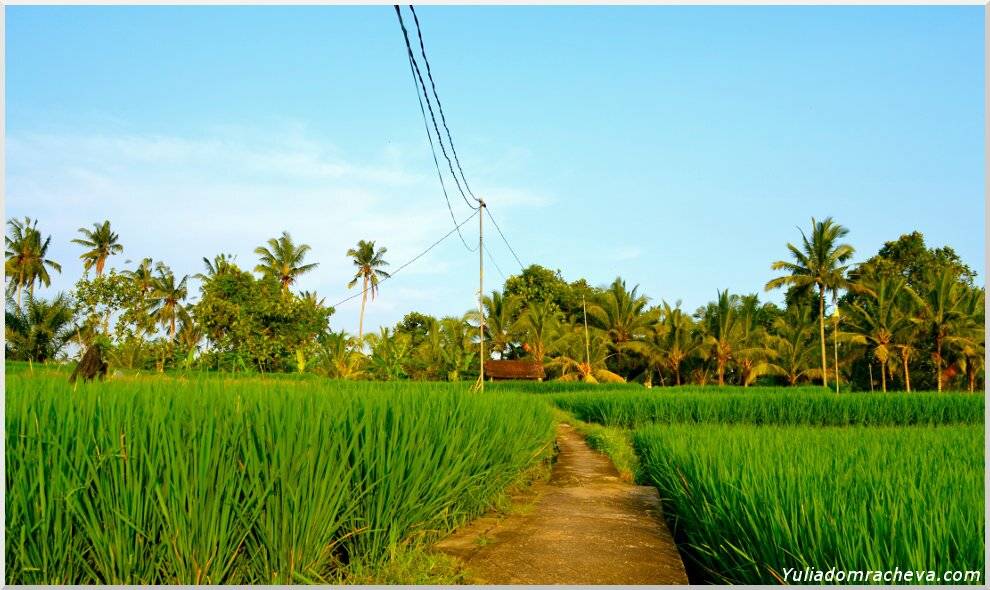 Полезное: пешая прогулка по рисовым полям начинается с поворота с главной улицы в Убуде (как ориентир отель «Puri Raka»).