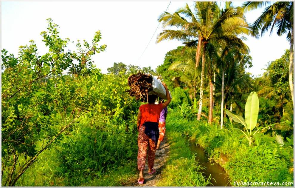 Гуляя и обсуждая жизнь на Бали и кризисы в наших странах, мы неоднократно видели балийских женщин, несущих тяжеленные штуковины на голове. Конечно, для меня это не диковинно. Но как, я до сих пор не понимаю, им удается переносить на голове огромные корзины, доски, кирпичи, подносы с напитками и овощами. Ну как такое возможно???