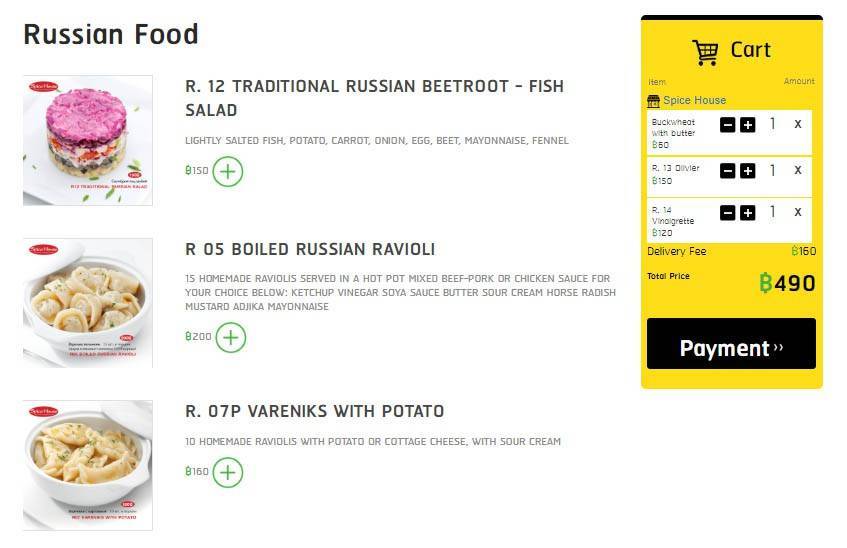 Сайт удобный, наглядный и переведён на английский и китайский. Для создания заказа сперва зарегистрируйтесь, затем выбирайте ресторан по рекомендациям, расположению или типу кухни. В списке вкусных мест даже есть русская кухня из Spice House, Macaw и Olivier Cafe. Для удобства Пхукет разделён на территориальные зоны. Стоимость сервиса доставки (Delivery Fee) начинается от 60 бат. Май Кхао — пока единственный район, куда доставку не делают. Очень удобно, что можно заказать еду из двух или даже трёх ресторанов в одном районе, доплатив по 40 бат. Больше всего мест расположено в Пхукет-тауне и в районе Чалонг.