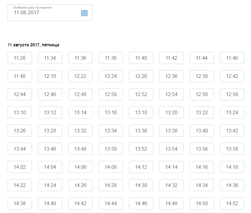 Выбираем дату посещения и удобное время. Это время, в которое Вас вызовут и примут документы.