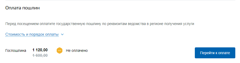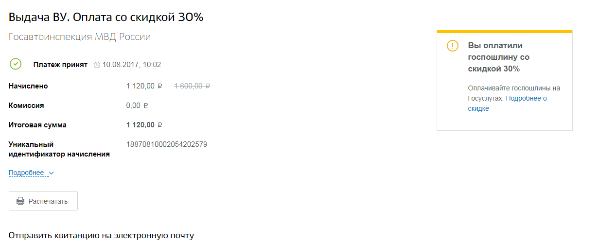В период с 01.01.2017 по 01.01.2019 при оплате пошлины через сайт Госуслуг предоставляется скидка 30%. Стоимость МВУ при этом составляет 1120 рублей.