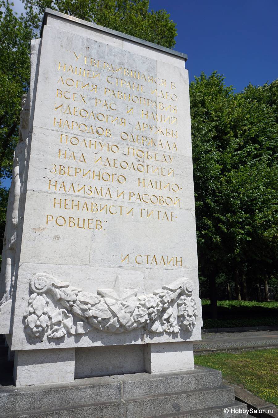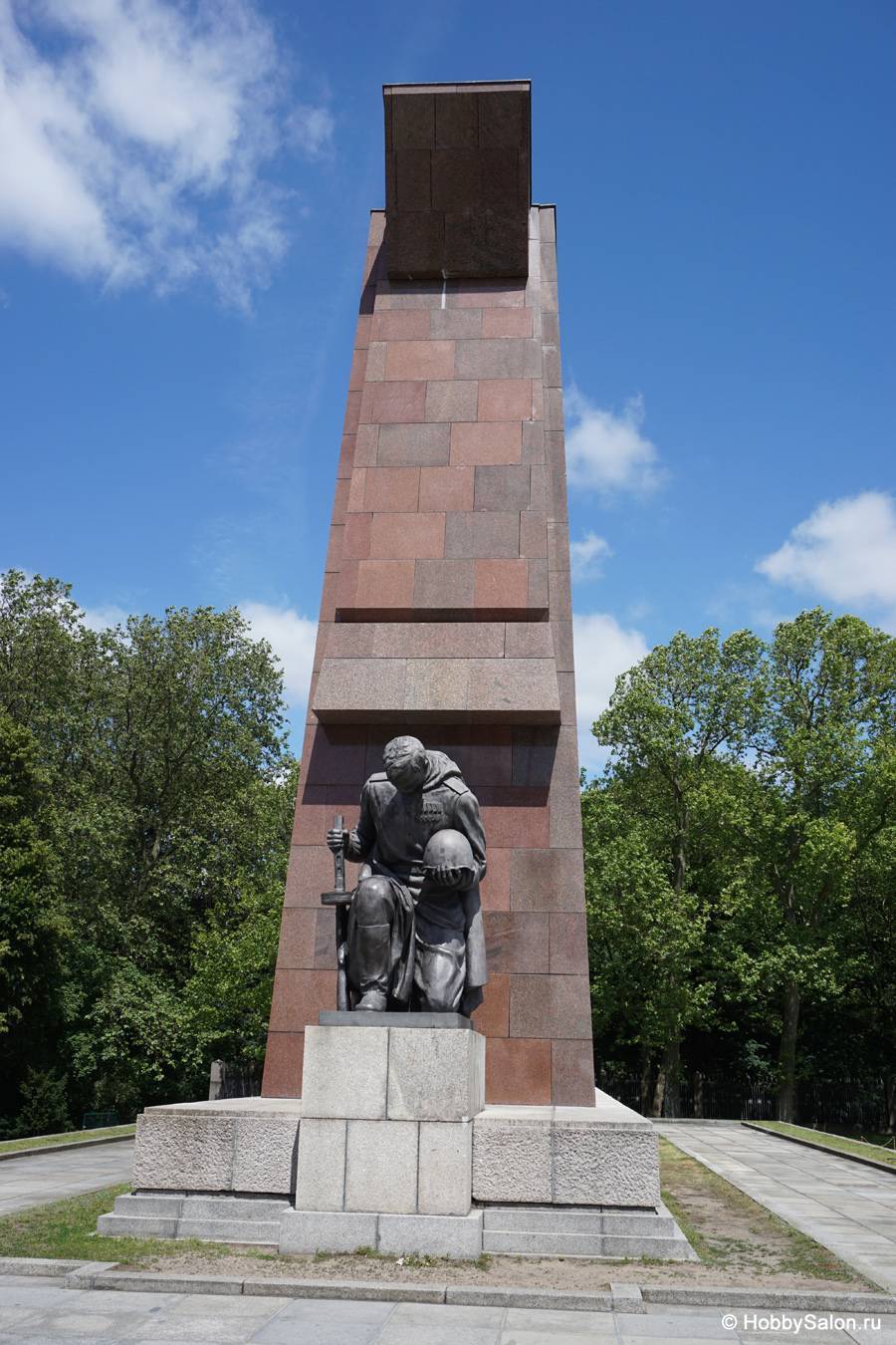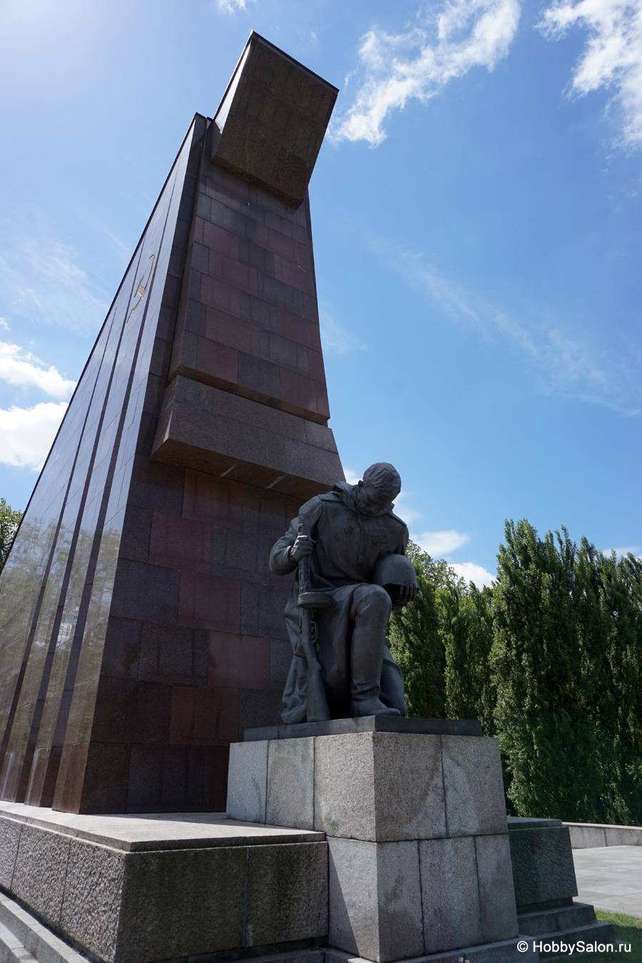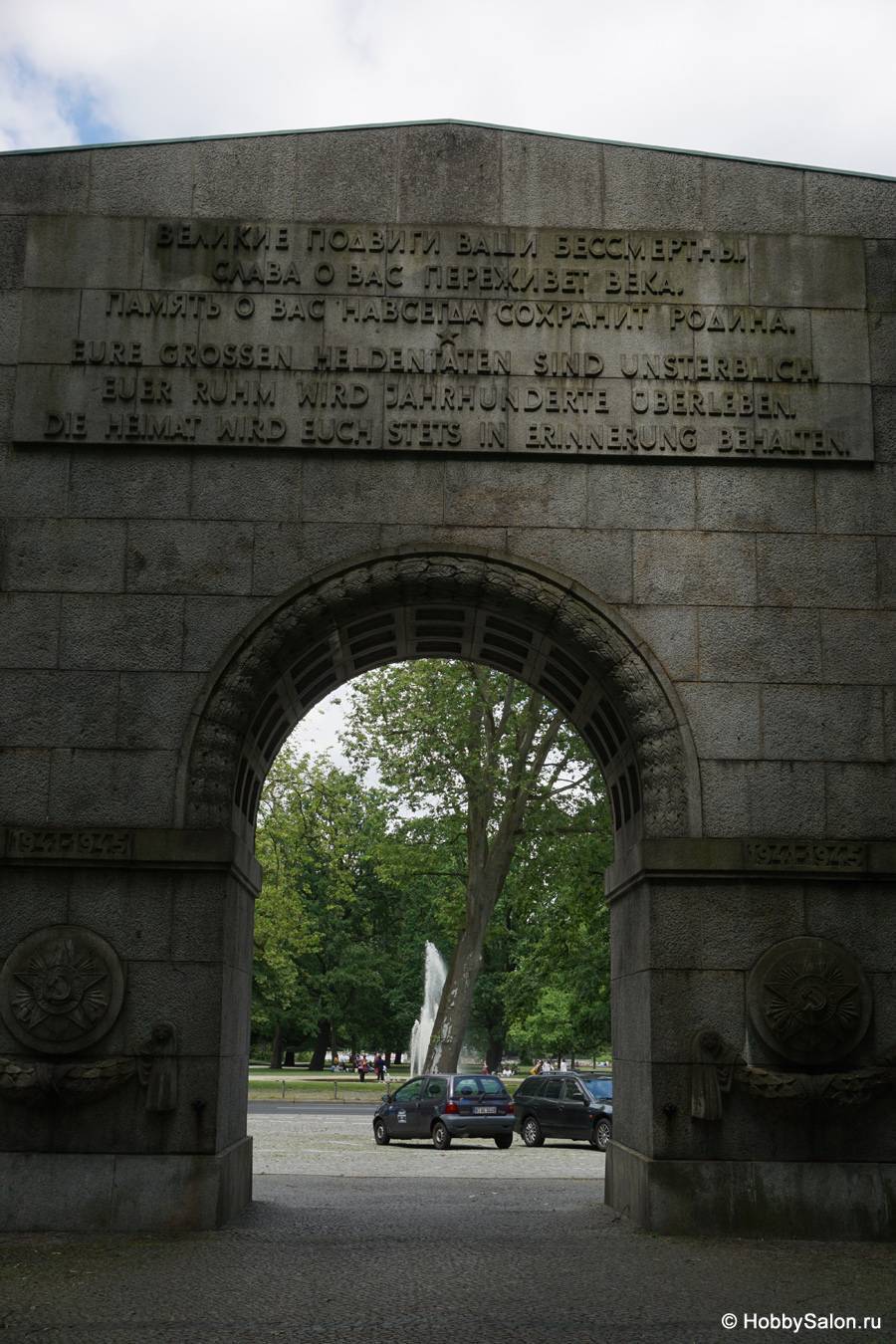 7 тысяч наших солдат захоронены в Трептовом парке. Вечный огонь в чашах, коленопреклонённые солдаты, склонённые знамёна с надписью на двух языках «Вечная слава воинам Советской Армии, отдавшим свою жизнь в борьбе за освобождение человечества».