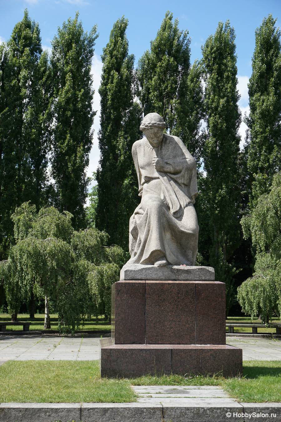 В начале коплекса скульптура — скорбящей женщины («Мать Родина»). Её установили в 1967 году.