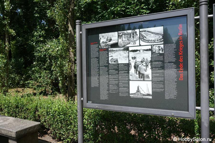 Советский мемориал был построен после Второй мировой войны , на центральной площади бывшей детской площадки и спортивного поля на заданию советской военной администрации с 1946 по 1949 год и занимает площадь около 100 000 квадратных метров. Памятный мемориал и военное кладбище в советских военных кладбищах и выступает за примерно 80 000 солдат Красной Армии , погибших в битве за Берлин в заключительном этапе Второй мировой войны .