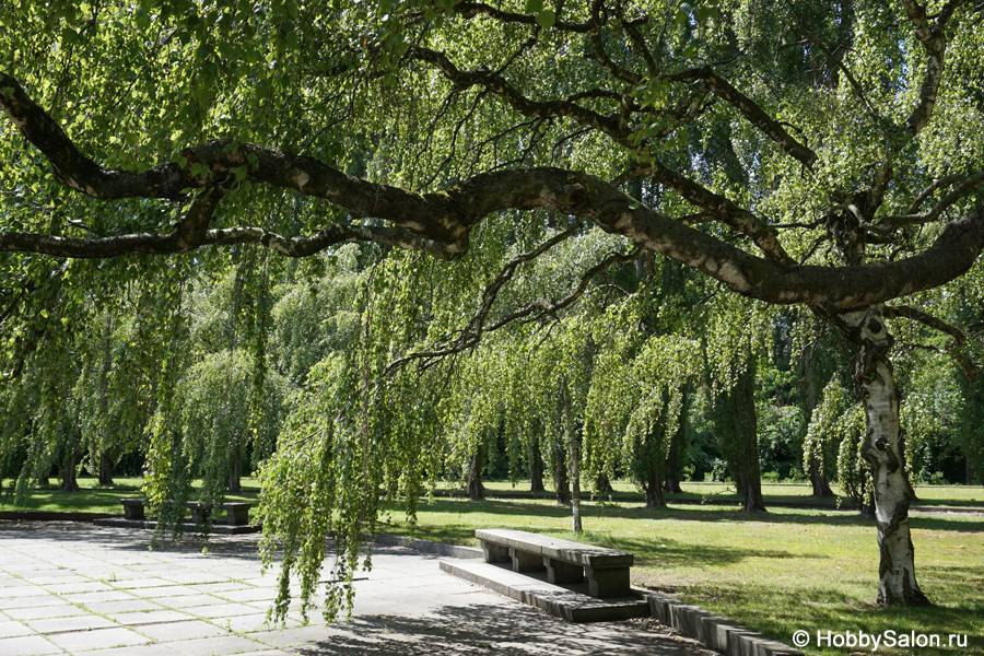 На территории мемориала растут русские берёзы.
