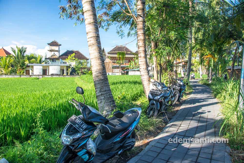 Obviously this will depend on where you are staying in Ubud. If you are staying in Ubud Village you can just walk to the start of the Campuhan Ridge Walk at the Warwick Ibah and continue. But if you are staying in the outskirts of Ubud, you can park your scooter in the parking just down the hill from the Warwick Ibah sign.