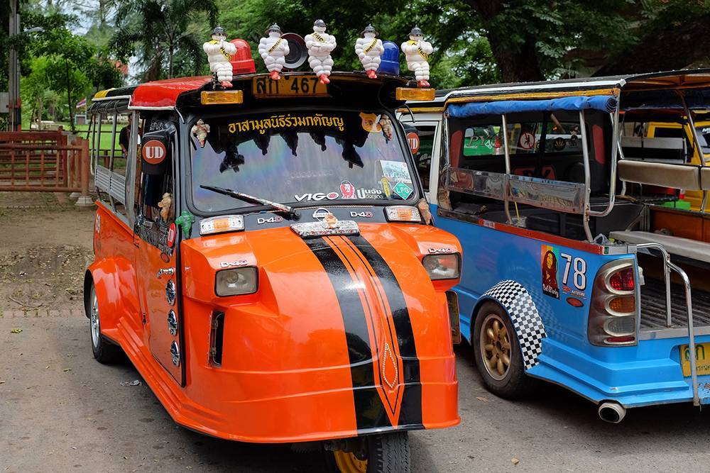 Самые же необычные тук-туки ездят по Аюттхае — древнему городу в 80 километрах к северу от Бангкока. Туристы приезжают смотреть столетние пагоды, остатки древнейшей цивилизации, а на самом деле уникальное в Аюттхае — это тук-туки. Откуда пошла такая мода, кто первым начал их тюнинговать — неизвестно, но конструкция совершенно удивительная. Сравнивая с остальными моторикшами, аюттхайские выглядят как концепт-кары из будущего.