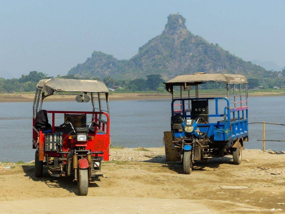 В Янгоне запрещен мототранспорт, но в соседнем городе Баго тук-туки — официальный общественный транспорт с конечными остановками, маршрутом движения и номерами. Это маршрут номер 12 — да, в Мьянме используют свои цифры.