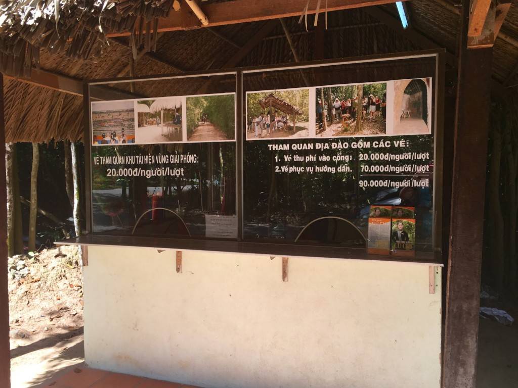 Перед тем, как войти в билетную дверь прямо у края леса, посетители видят выставку оружия, применявшемся США, и партизанского оружия. До момента входа в тоннели посетителям предлагается короткий фильм о них чтобы они поняли, как работает тоннельная система. Затем туристы отправляются в настоящий тоннель с экспозициями такими как: работа руководителей партийного комитета и военного командования, госпиталь, усиленное укрытие, продовольственные и оружейные бункеры, вентиляционные отверстия, боевые колодцы, колодцы для воды, печь. Посетители отведают блюда, приготовленные на специальной партизанской печи: рис на пару, маринованный салат из маниоки. Работает платное стрельбище. Также проводятся пейнтбольные сражения. На берегу реки Сайгон работает ресторан.
