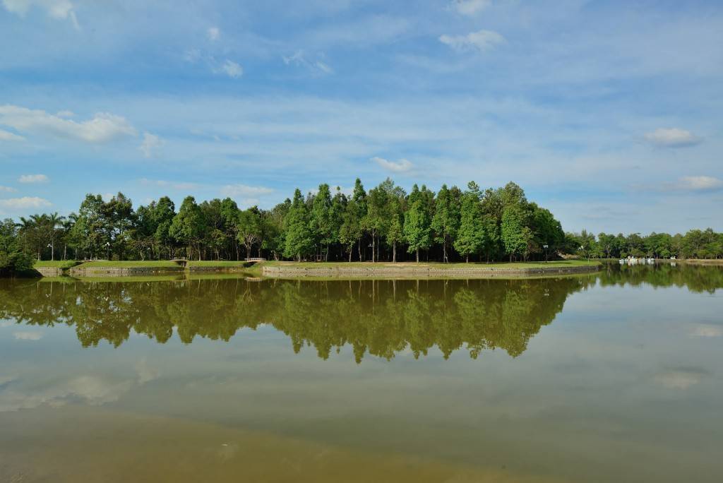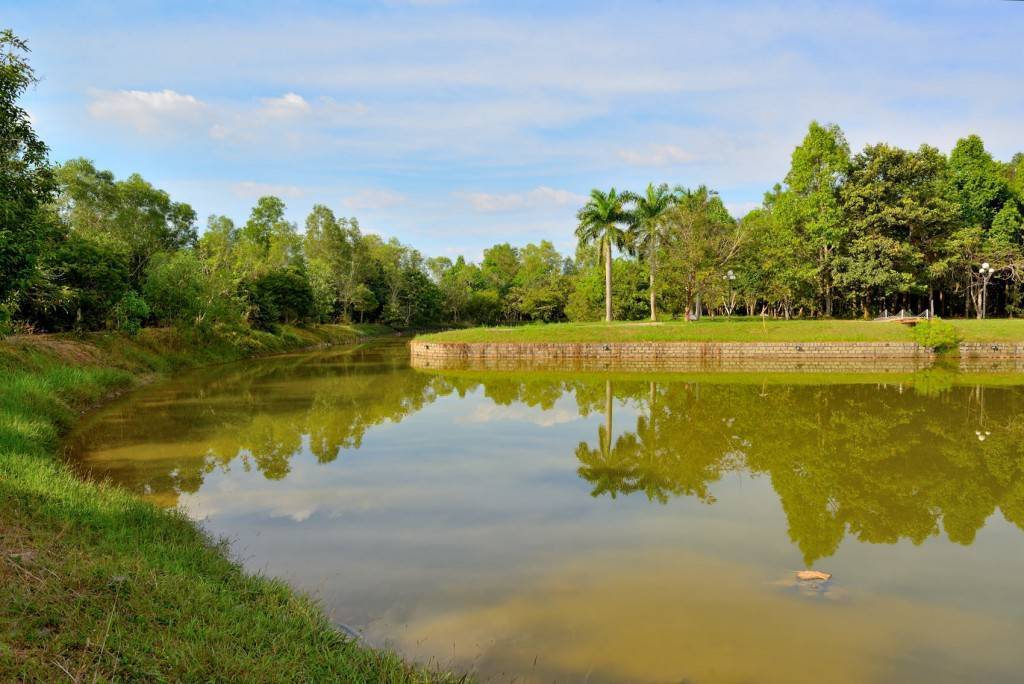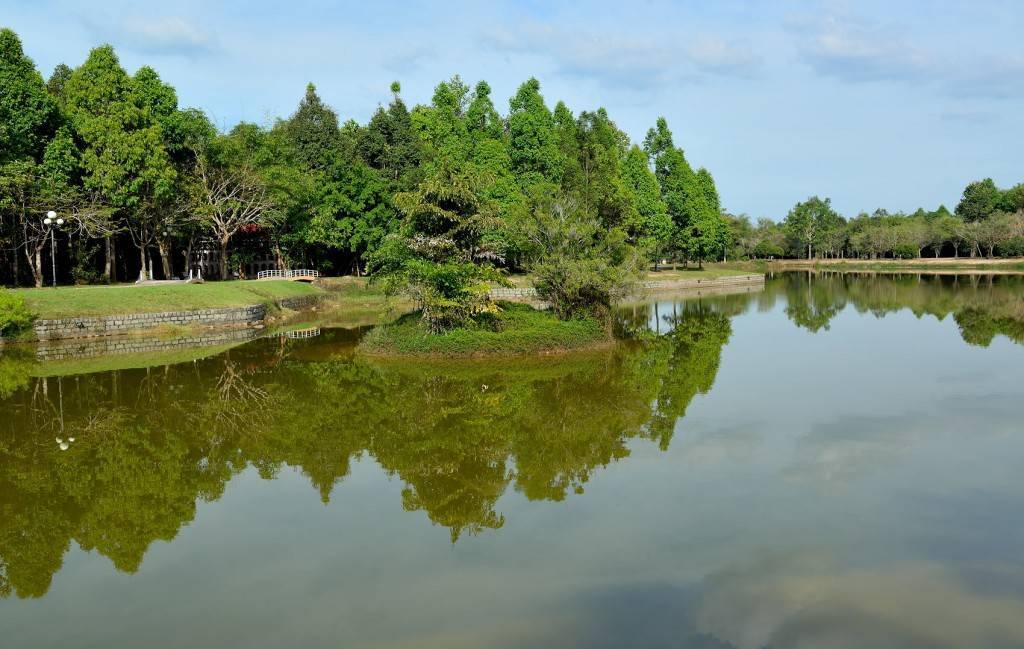 Потом мы двинулись в сторону тира, о котором были наслышаны. Сразу, выйдя из зоны экскурсии по тоннелям мы увидели билборд, который указывал, что до тира 1,5 километра. Это расстояние мы преодолели неспешным шагом минут за 15-20. Часть дороги шла вдоль весьма живописного озера, которое Вы видите на фотографиях. Дорогу нам скрасила вьетнамская пара из Ханоя, рассказав много интересного о Вьетнаме.