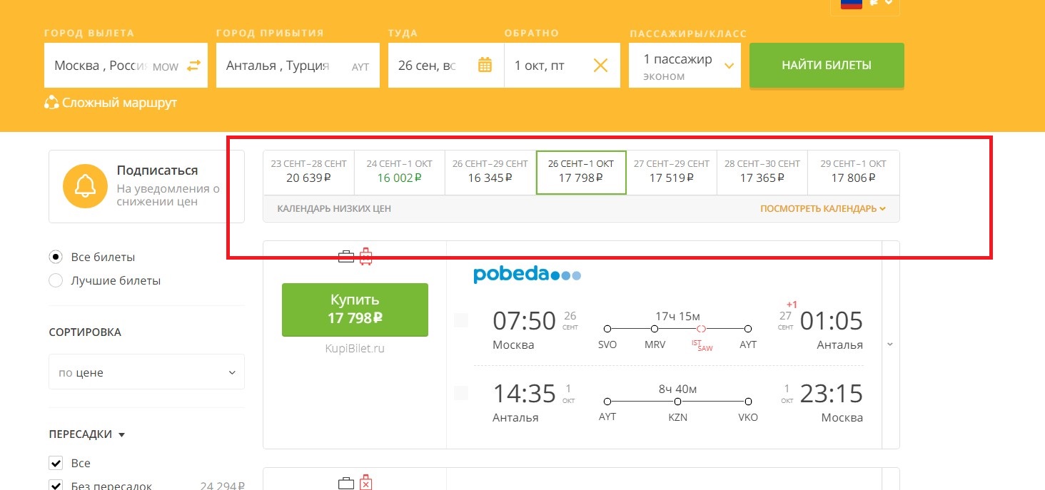 Календарь низких цен поможет выбрать выгодные авиабилеты в Турцию