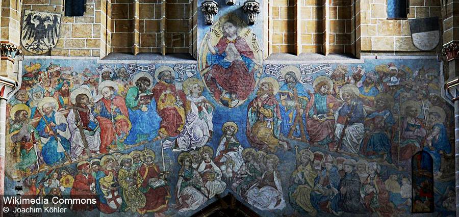 Пространство над аркой хора украшено огромной фреской площадью 145 квадратных метров с изображением Страшного суда (1471). Предположительно роспись (130 фигур!) была создана мастером Гансом Шухлином.