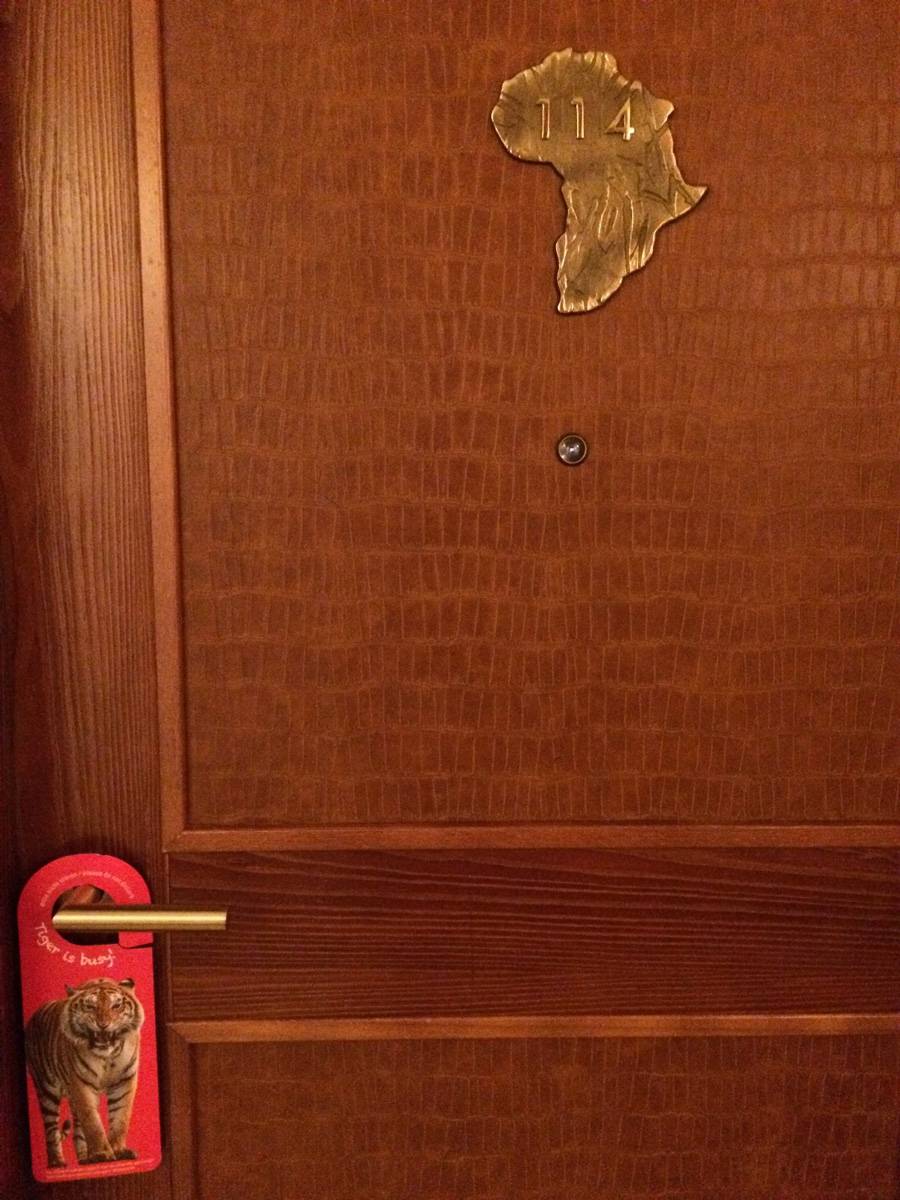 Отель — тематическо-экзотический, близость зоопарка обязывает. Один этаж оформлен в африканском стиле и даже табличка Do not disturb, которую надо вешать на дверь, гласит “Тигр занят” (если вы в номере) или “Тигр на прогулке” (если вы ушли).