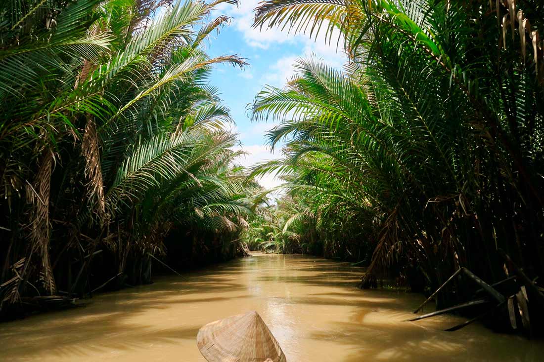 Мы часто узнаем ту знаменитую картину, на которой мужчины с их «nón la» (или типичная вьетнамская коническая шляпа) они тянут лодку через канал, зажатый между мангровыми зарослями, рисовыми полями и пальмами. Это изображение, одно из самых частых во Вьетнаме в последние годы, принадлежит Дельта Меконга, обязательное место для посещения во время любого приключения на территории Вьетнама после посещения других должников в стране, таких как Бухта Халонг или город Хойан.