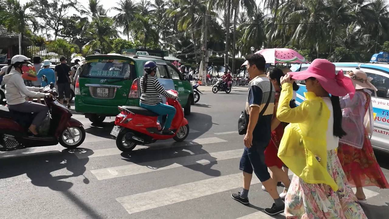 Переход улица во Вьетнаме – отдельный аттракцион. Даже если вы видите зебру – для вьетнамских водителей она совершенно ни о чем не говорит, и пропускать пешеходов на зебре не будет ни один водитель. Исключение составляют светофоры – их сигналов водители во Вьетнаме слушаются. Но если вам нужно перейти дорогу, а светофора поблизости не видно – нужно очень медленно начинать переходить улицу (для того, чтобы вас было лучше видно – лучше всего поднять вверх одну руку). Идя медленно, с поднятой рукой, смотря в сторону водителей (для дополнительной безопасности, на всякий случай) медленно переходите улицу – мотобайкеры вас будут как бы «обтекать».