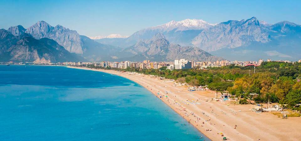Находится неподалеку от известной во всем мире Антальи. Именно этот удивительный уголок считают настоящей «визиткой» страны. Песчаные насыпи растянулись на впечатляющие 20 км, вдоль которых построены шикарные гостиничные комплексы.