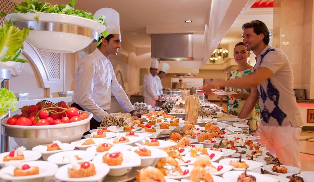 Многие туристы едут в Дубай, чтобы поесть в ресторанах, где готовят знаменитые шефы из разных стран мира. Находясь неделю в одной стране, можно попробовать настоящую итальянскую пасту или испанскую паэлью, поэтому чаще всего постояльцы дорогих отелей ограничиваются континентальным завтраком.