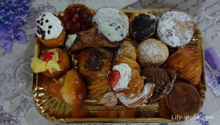 «На вкус и цвет…», но что для нас, то многообразие пирожных, только внешне является таковым, большинство на вкус, примерно одинаковые и на раз попробовать. А вот классические итальянские круассаны с нежнейшим вайт кремом или шоколадом, равно как и сицилийские каннолли – вне конкуренции))
