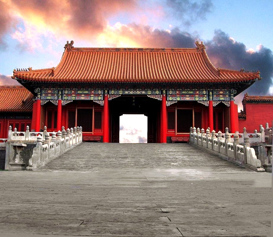Главным входом в загадочный Запретный город Китая считаются Ворота Небесного Спокойствия, расположенные с южной стороны. Сразу за ними начинается широкая дорога, по левую сторону от нее находится роскошный императорский сад, а справа — кипарисовый лес Тайцзи. Дорога приведет нас к Воротам Правильного Поведения.