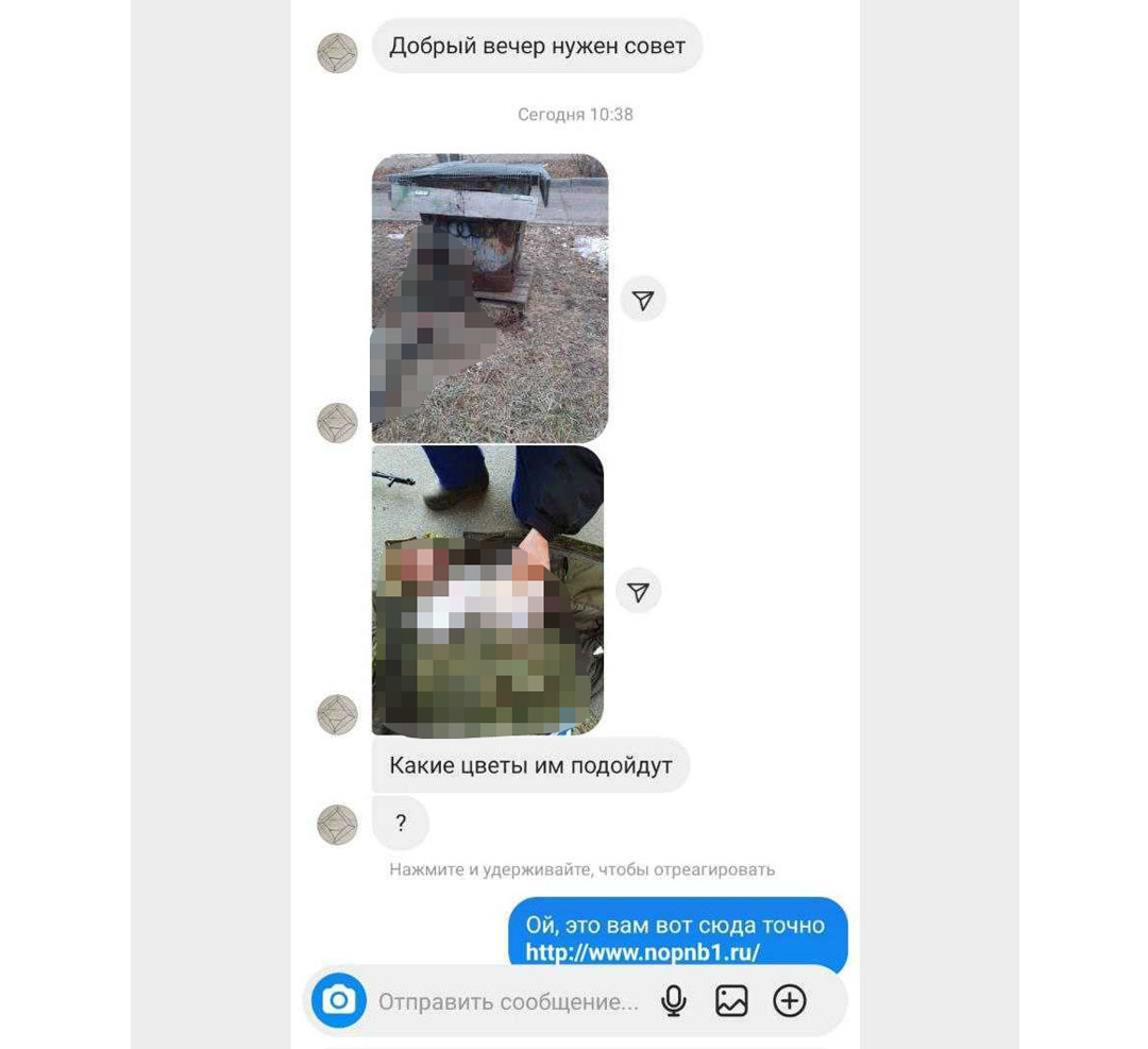 «Написали пять человек с закрытых аккаунтов, просили консультацию. После того как отвечаешь, что готова помочь, присылают фотографии искалеченного военного. Для обычного человека это достаточно устрашающая фотография. Но не для врача — врачи всё же с трупами сталкиваются. И следующее сообщение было: «Помогите, пожалуйста, этому человеку». Определённо, это была провокация», — рассказала косметолог.