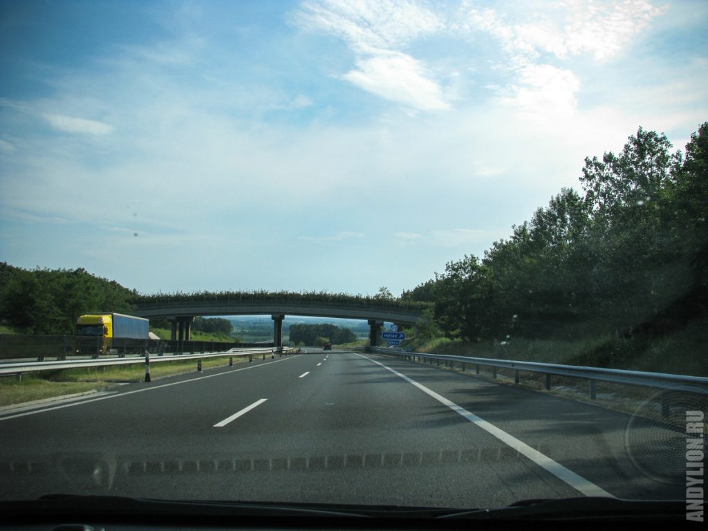 Часть пути по Венгрии ничего особенного собой не представляла. Хороший автобан с разрешенной скоростью 130км/ч, но с абсолютно неинтересными пейзажами по сторонам.