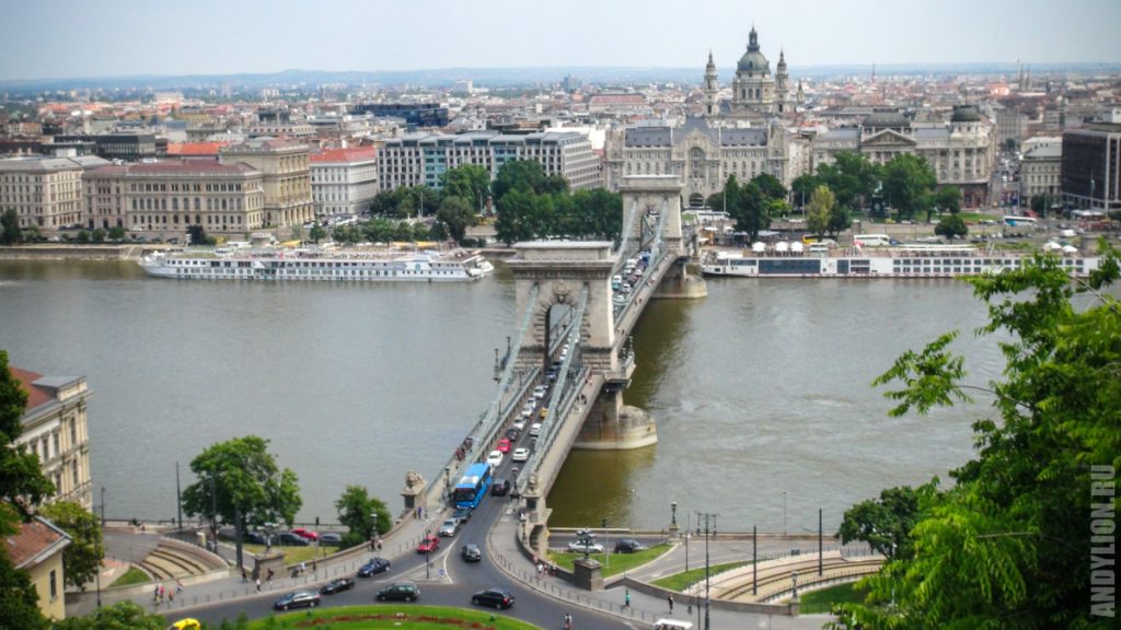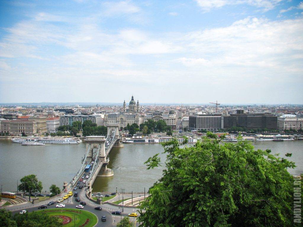 Первым делом отправляемся на смотровую площадку, которая находятся сразу на выходе из фуникулера. Отсюда открывается прекрасный вид на Дунай, Цепной мост и Собор св.Иштвана.