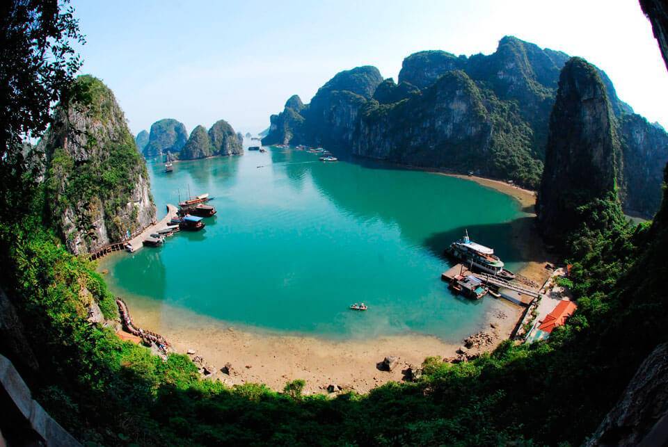 Бухта Ха Лонг особо отмечена ЮНЕСКО. Место совершенно неповторимое. Говорят, что именно здесь можно постичь душу Вьетнама. По всей бухте разбросано свыше полутора тысяч островков. Южно-Китайское море – всегда тёплое, даже зимой температура не опускается ниже 24-25 С. Но всё же приезжать сюда для пляжного отдыха лучше с середины весны и до середины осени. В противном случае, вам могут испортить отдых проливные дожди и туман. Пляжи тут песчаные, во многих местах песок насыпали искусственным путём, так что можно быть уверенным в его качестве. Ширина пляжей достигает 100 м.