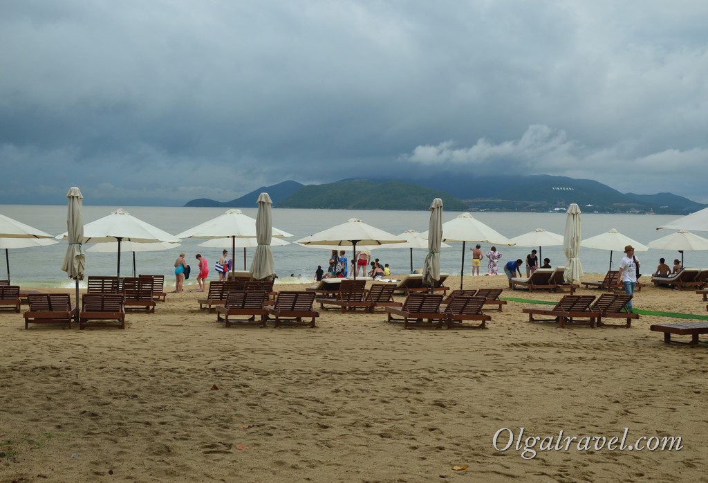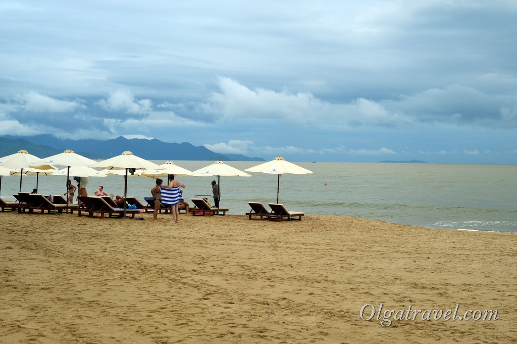 Пляж Нячанг в октябре мало чем отличается от пляжа Нячанга в марте: пляж ухоженный, песок чистый, только вот возле самой кромки воды после обеда собирается мусор, вынесенный волнами из моря. Каждый вечер пляж убирают. Как и раньше радует хороший заход в море, без камней и кораллов, почти сразу глубоко, а не так как на популярном пляже Ао Нанг в Таиланде – идешь-идешь, а моря все нет …