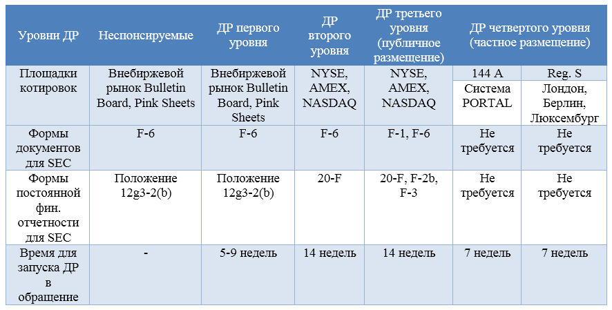 - Отдельным уровнем можно выделить частные депозитарные расписки США (правило 144А), продаваемые только квалифицированным институциональным инвесторам (Qualified Institutional Buyer, QIB) через систему PORTAL. По положению S размещение можно делать и на европейских площадках;