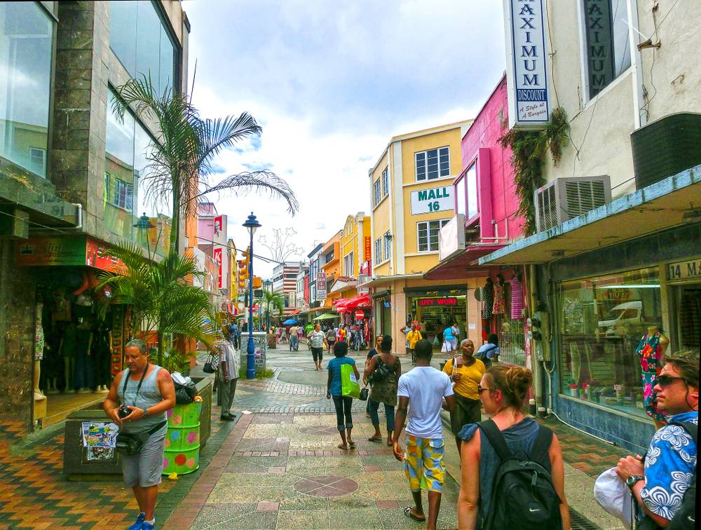 Главные улицы Бриджтауна на Барбадосе. Это небольшой городок, население которого составляет всего 100 тыс. жителей. Официальным языком является английский, но практически все население говорит на местном диалекте английского языка.