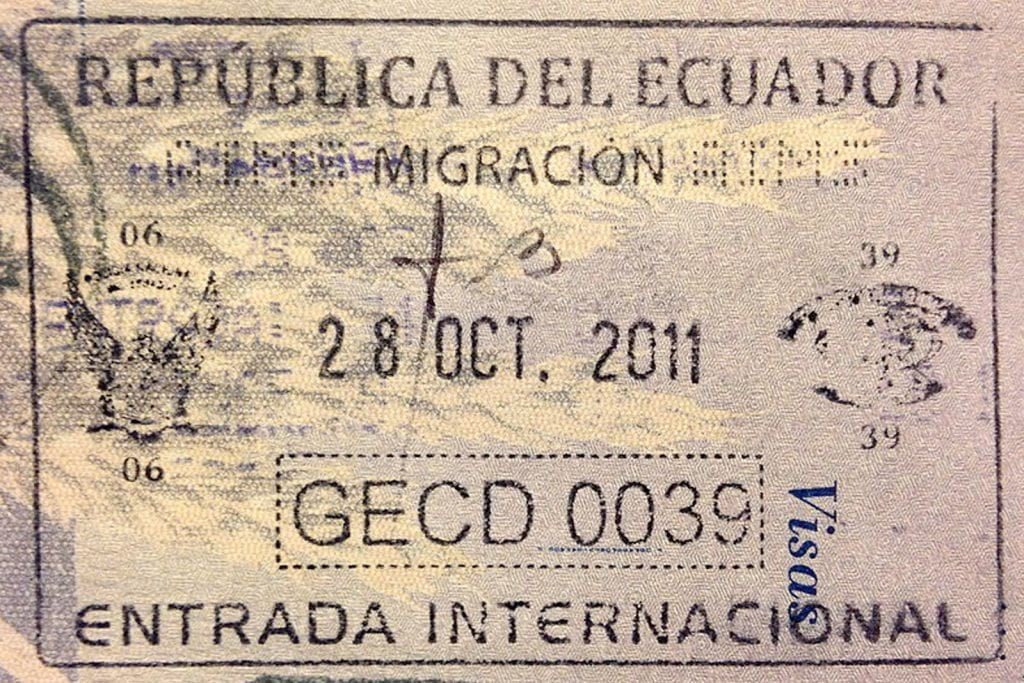 - При пересечении эквадорской границы приезжий из РФ/Украины предъявит загранпаспорт. Минимальный срок действия документа – полгода на момент въезда в южноамериканское государство. По прибытию интуриста в паспорт бесплатно поставят въездной штамп.