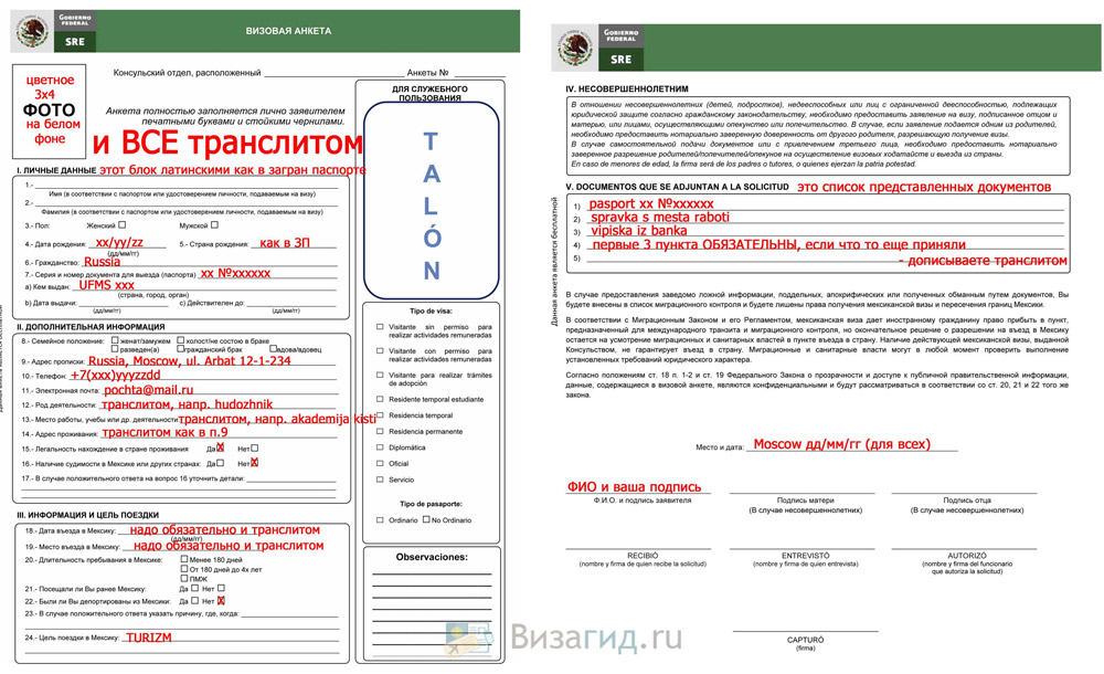 Многократные визы в Мексику сроком действия более 180 дней оформляются при личной явке претендента в Посольство Мексики в Москве.