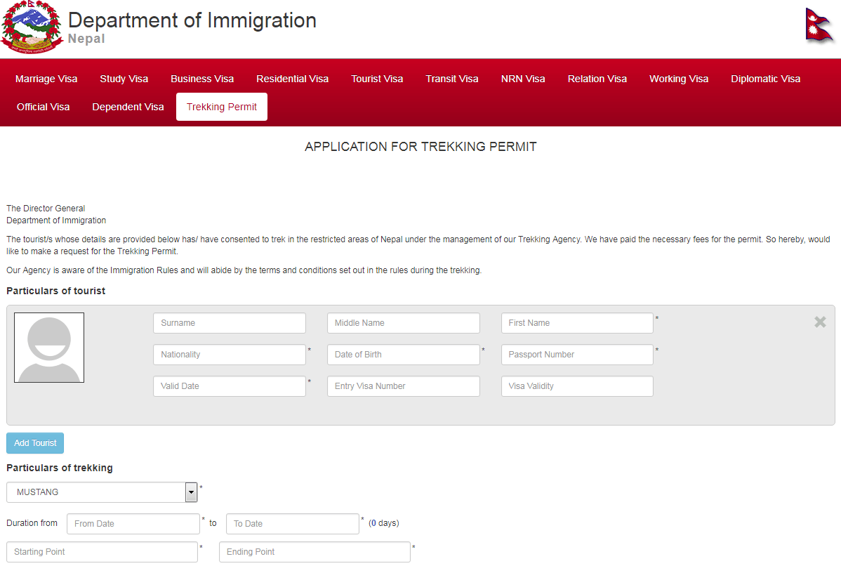 В анкете, заполняемой онлайн, указывается также адрес проживания в России и количество дней, которые турист собирается провести в Непале.
