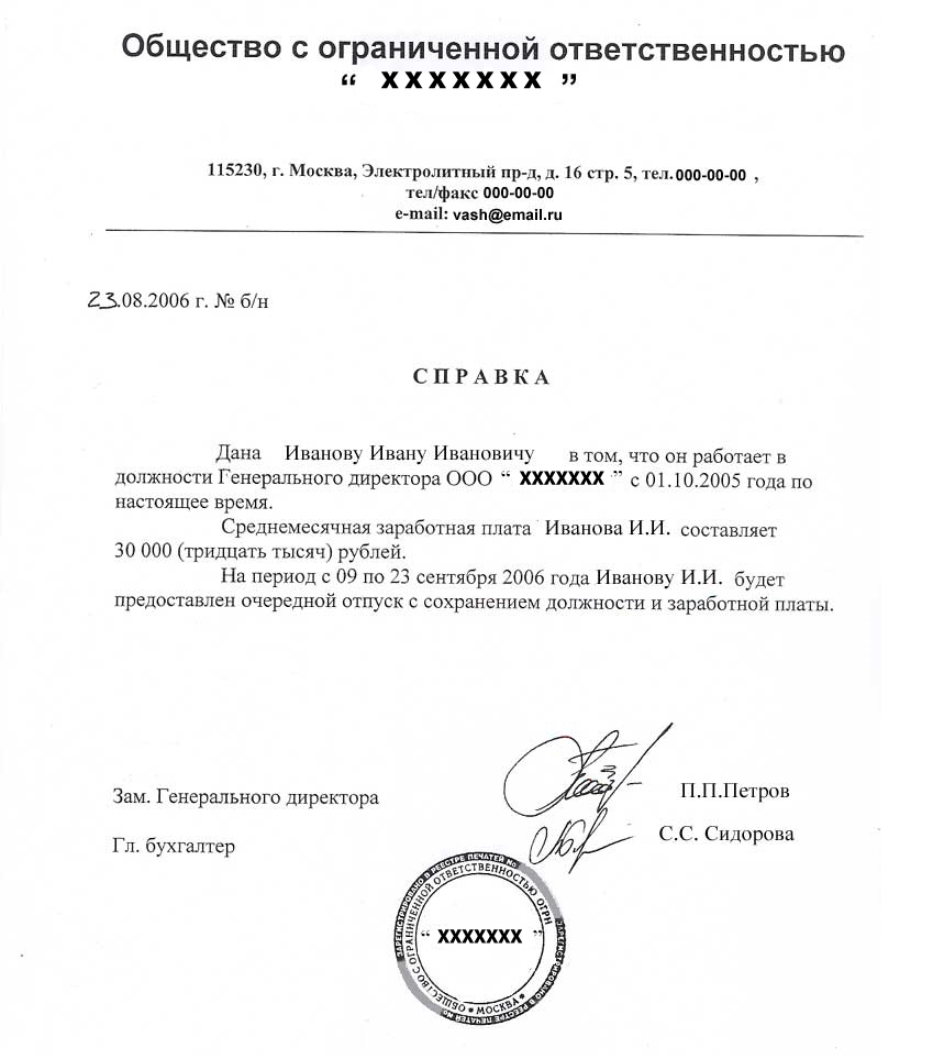 - Справка от работодателя (с учебы) в оригинальном исполнении на бланке компании. В бумаге указывается оклад и должность заявителя.
