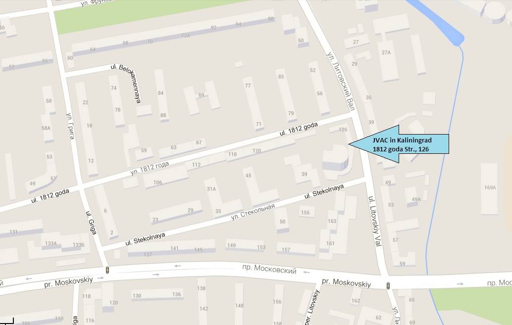 Центральный сервисно-визовый центр Германии в Калининграде расположен по адресу: 236016, Калининград, улица 1812 года, 126. Вход осуществляется со стороны улицы Литовский вал. Подача пакета документов и рассмотрение вопросов осуществляется по будням (с понедельника по пятницу) с 8:00 до 16:00.