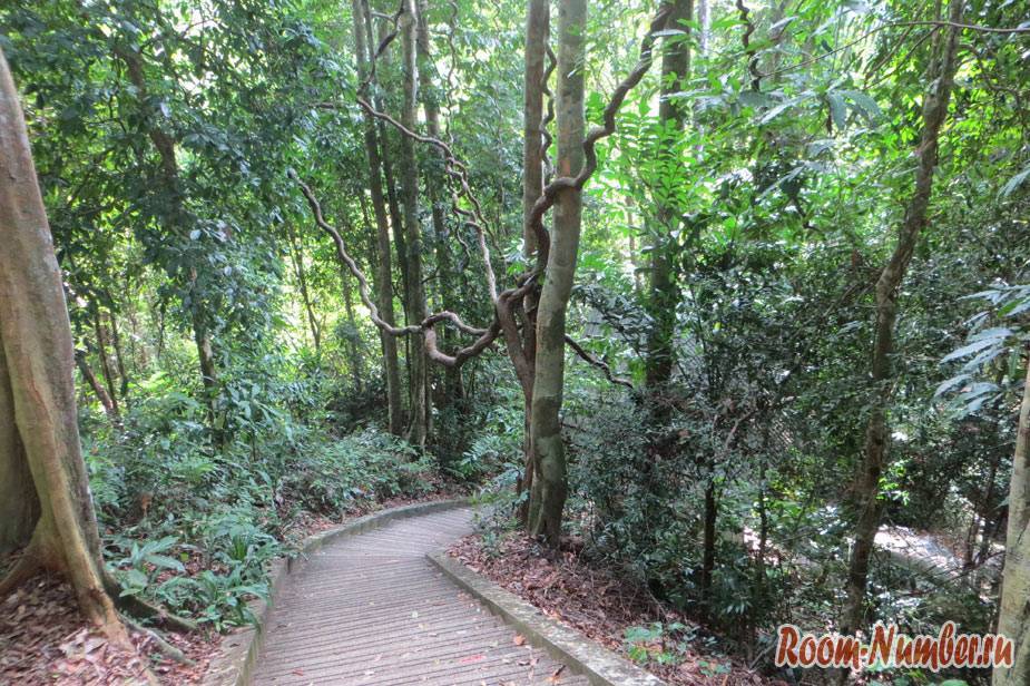 Дорога продумана, кто устанет, может присесть на лавочку в одной из беседок. Это очень кстати, так как подъем вверх по крутой лестнице на жаре и повышенная влажность в дебрях лесных заставляет сердце биться сильнее обычного.