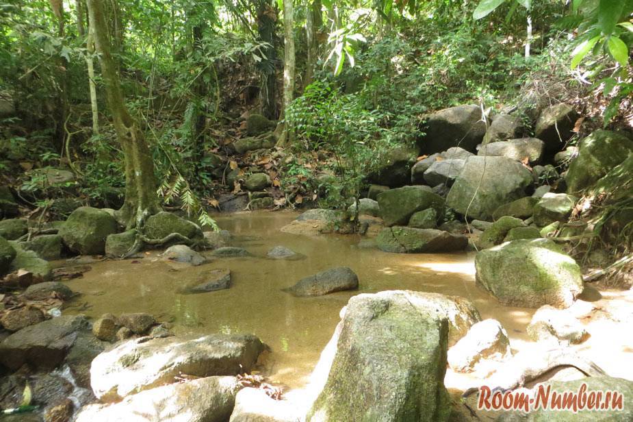 Самый последний каскад расположен за пределами цивилизационных дорожек и минут пять придется идти сквозь джунгли. По пути следования можно встретить много живности — вараны, пауки, змеи, скорпионы. Если смотреть под ноги, то неприятностей не будет.