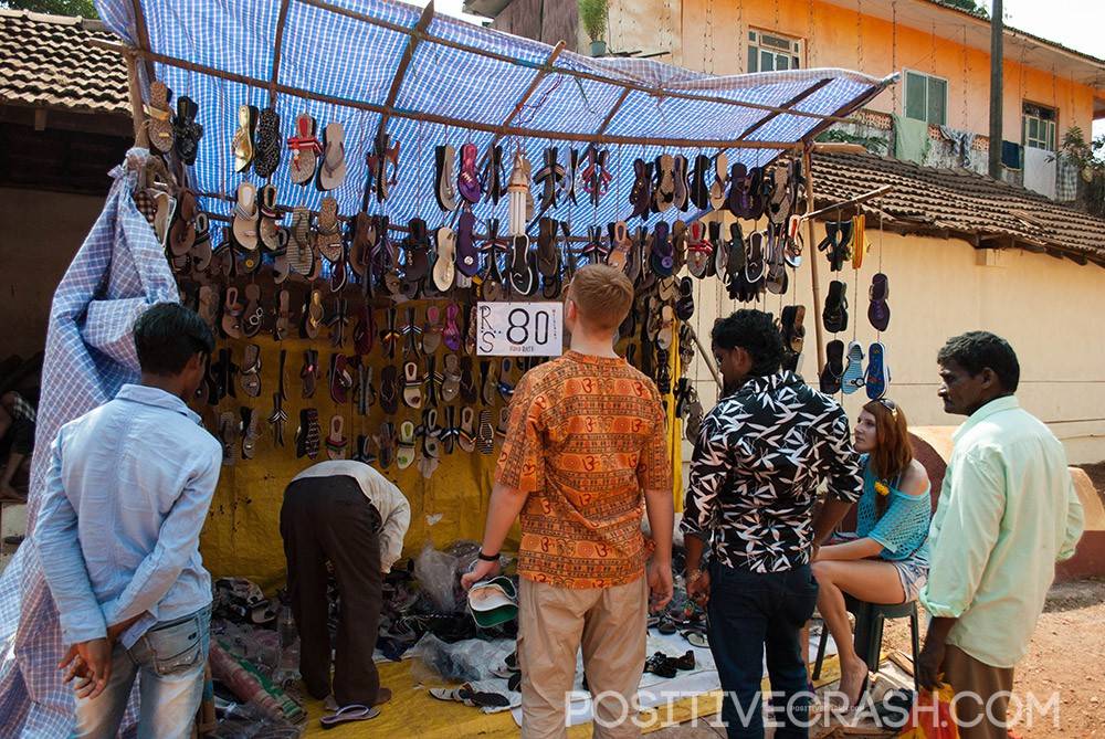 После церемонии мы, весьма умиротворенные, вышли на дворик перед храмом, опаленный полуденным солнцем. И тут же окунулись в торгующую Индию. Даже тут, пусть и не так навязчиво. И еще где-то полчаса выбирали шлепки по 80 рупий на нашу русскую большую ногу))