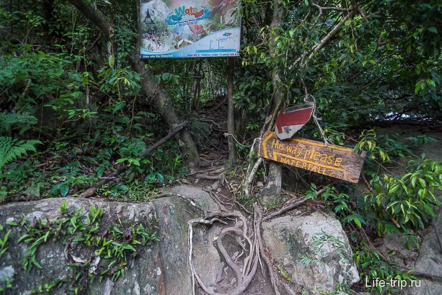 Чтобы попасть на водопад, нужно начать путь с пляжа Маенам и свернуть на улицу Soi 5. Вот в этой точке 9.544506, 99.991538 нужно свернуть на второстепенную дорогу. Дальше ориентируйтесь по табличкам.