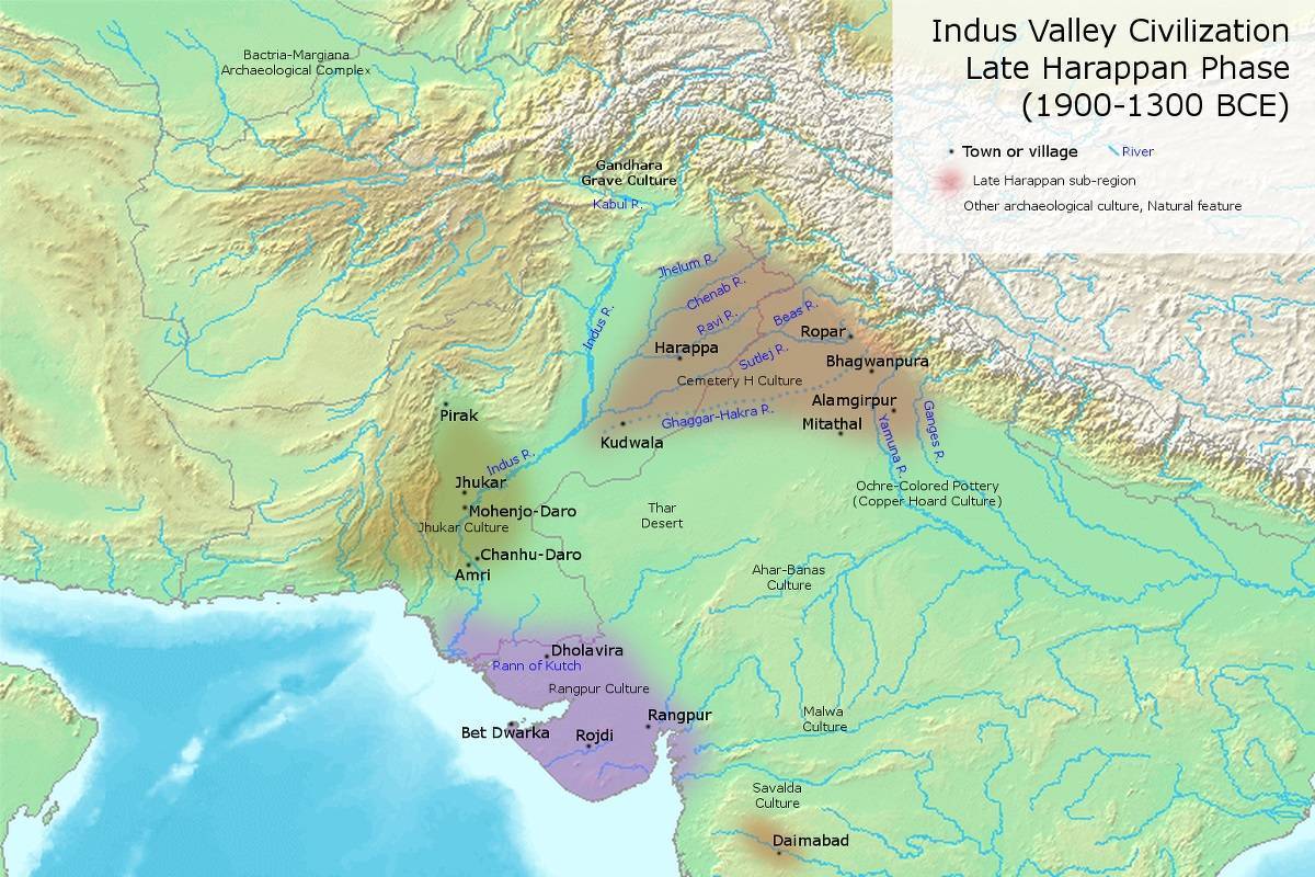 Примерно 30 тысяч лет назад на Индийский субконтинент пришли первые люди. Вероятно, они были родом из Африки, откуда отправились в более доступный северо-западный регион Индии, где распространились малыми группами охотников и собирателей. Считается, что земледельческие работы и строительство маленьких поселений началось примерно в 6000 г. до н. э., то есть несколько позже, чем в других местах. Однако первая из высокоразвитых индийских культур возникает всего несколько столетий спустя после великих царств Месопотамии и Египта и таким образом принадлежит к древнейшим в мире. Она просуществовала всего 750 лет, с 2500 по 1750 гг. до н. э., и о тех людях и их культуре известно очень мало.