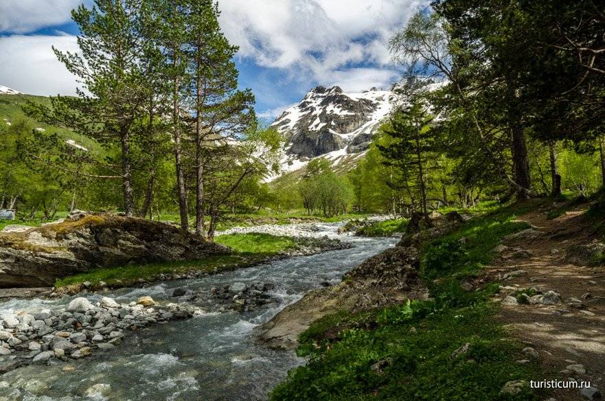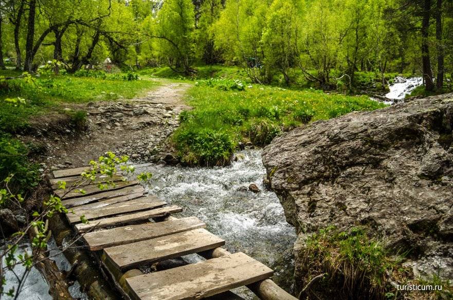 Туристам нужно держаться тропы, что пролегает вдоль небольшой речушки, название которой то ли никто не помнит, то ли она вообще не была наименована.